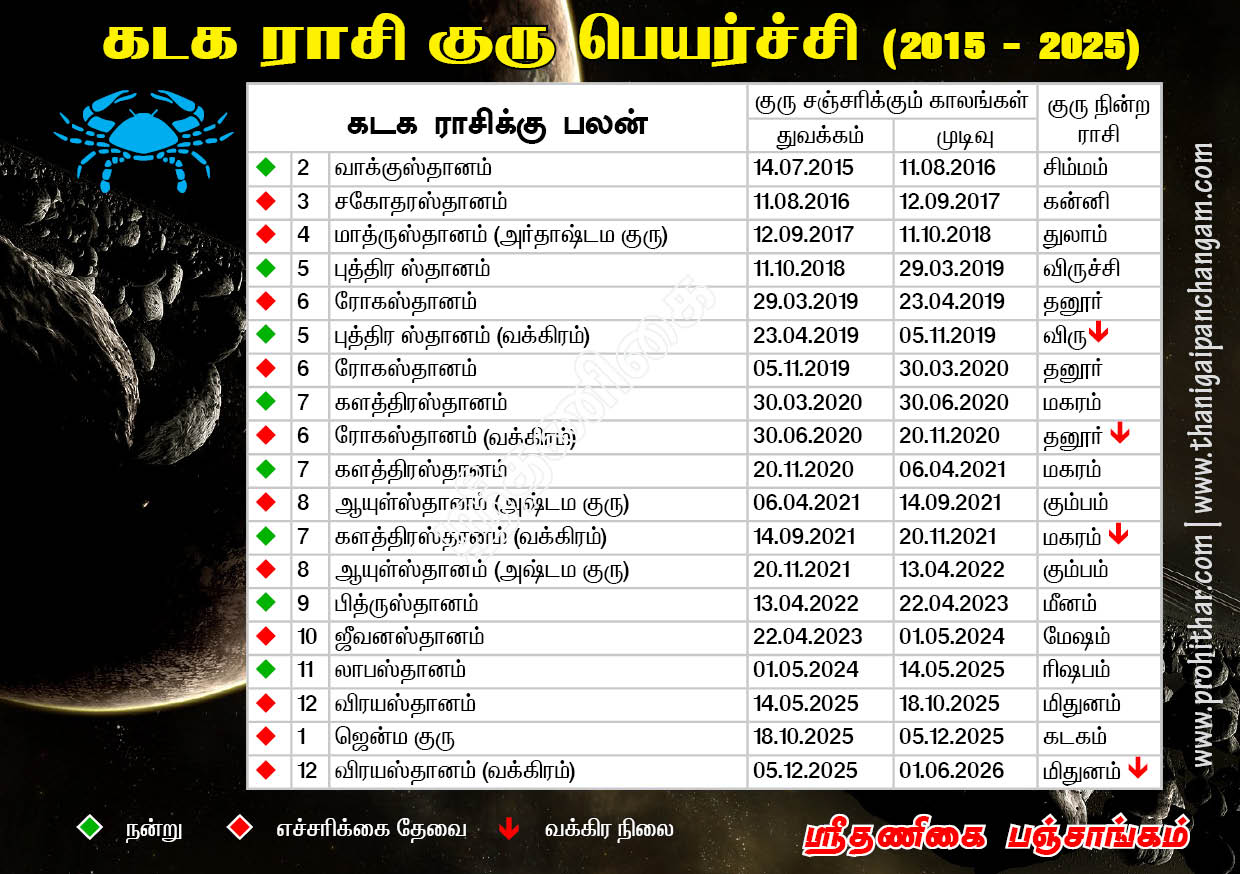 கடக ராசிக்கு குரு பார்வை (2015 முதல் 2025 வரை) சிம்ம ராசிக்கு குரு பார்வை (2015 முதல் 2025 வரை)