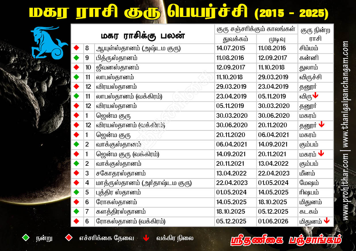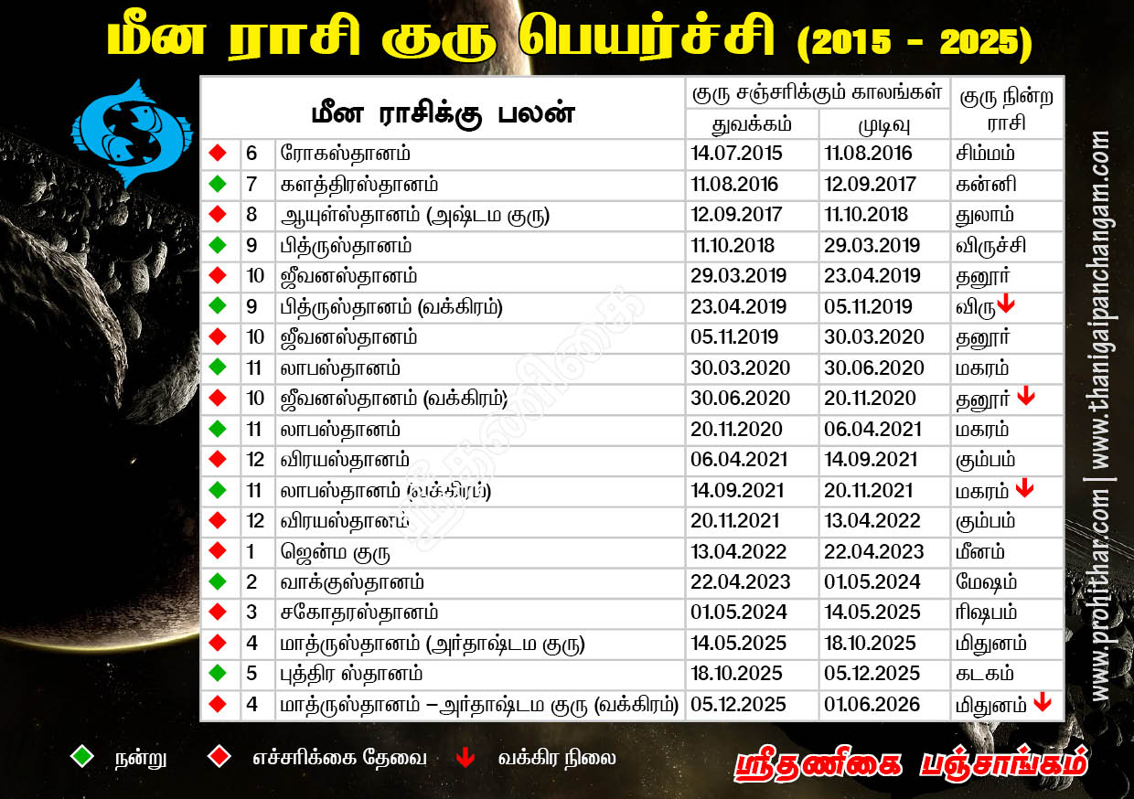 தனூர் ராசிக்கு குரு பார்வை (2015 முதல் 2025 வரை) மகர ராசிக்கு குரு பார்வை (2015 முதல் 2025 வரை) கும்ப ராசிக்கு குரு பார்வை (2015 முதல் 2025 வரை) மீன ராசிக்கு குரு பார்வை (2015 முதல் 2025 வரை)