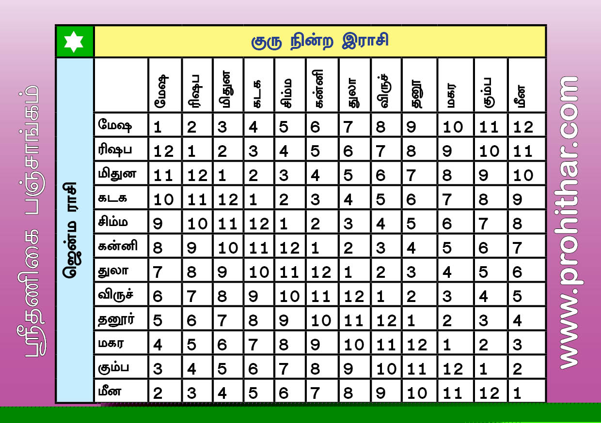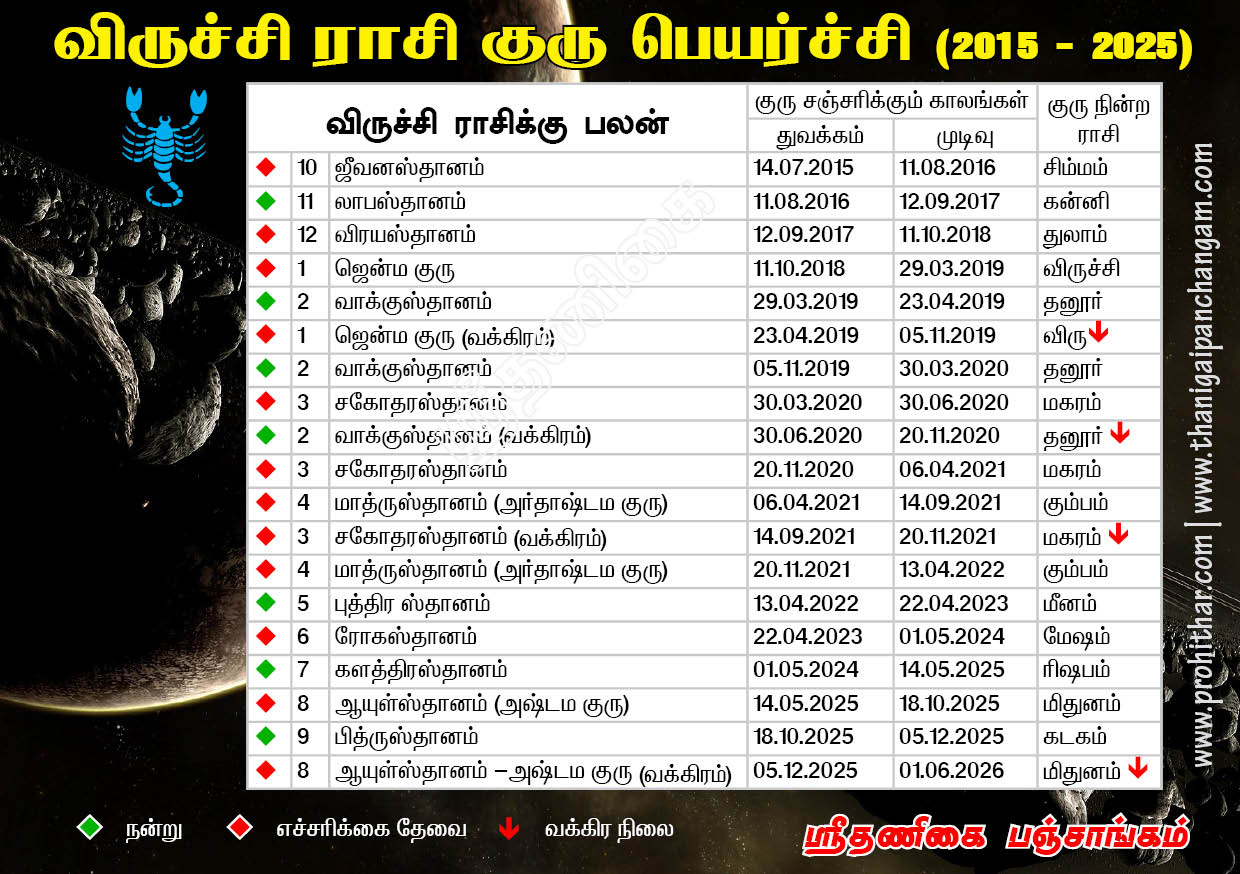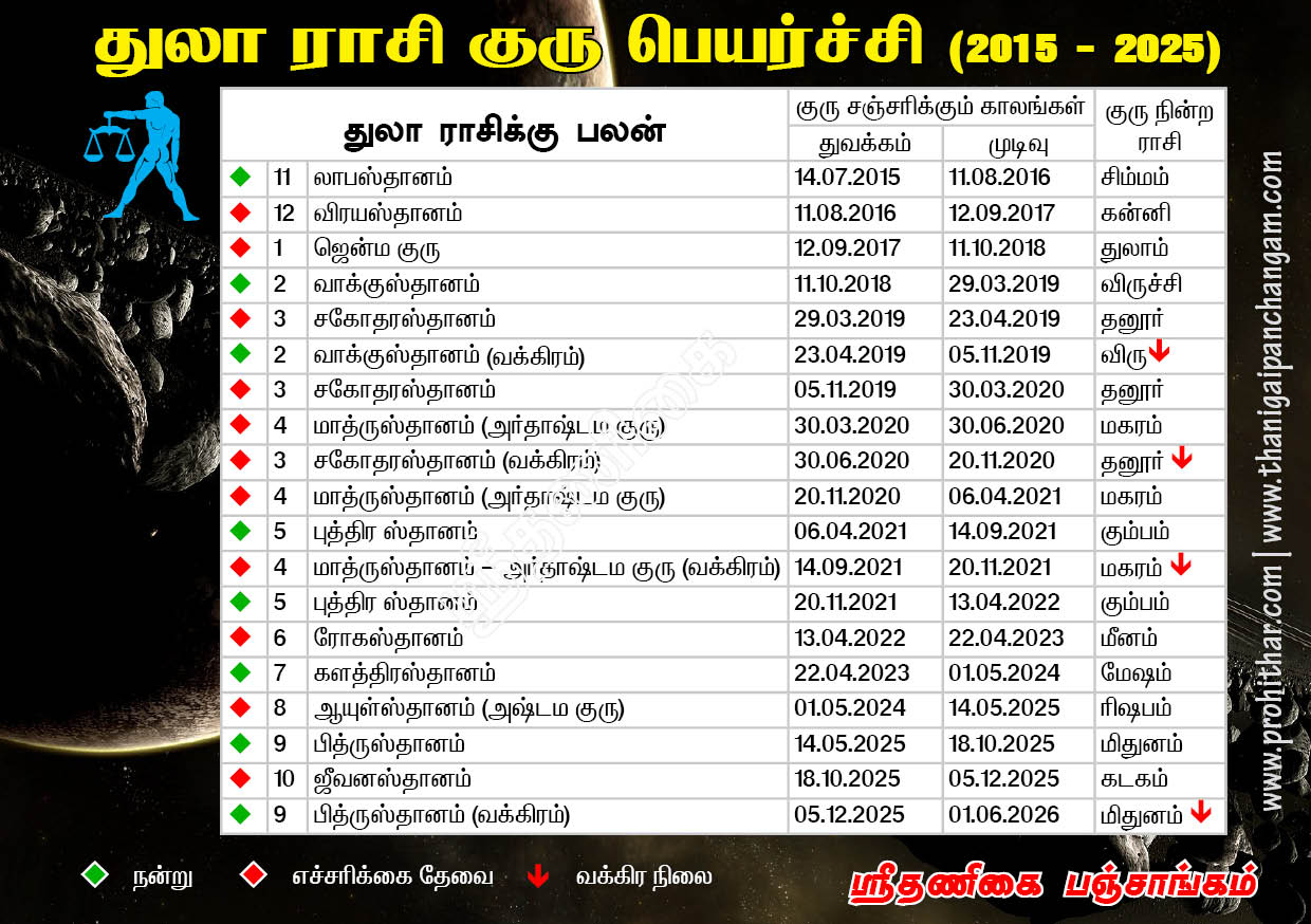 கன்னி ராசிக்கு குரு பார்வை (2015 முதல் 2025 வரை) துலா ராசிக்கு குரு பார்வை (2015 முதல் 2025 வரை) விருச்சிக ராசிக்கு குரு பார்வை (2015 முதல் 2025 வரை) குரு நின்ற இராசிக்கும் ஜென்ம இராசிக்கும் இடையே உள்ள நிலை